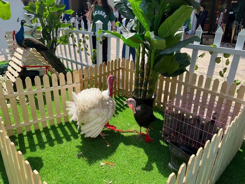 現(xiàn)場有孔雀、矮馬、羊駝、鴕鳥、豚鼠、小浣熊等小動物,有誰能拒絕毛茸茸的大小朋友繞膝玩樂呢?左手摸羊駝,右手牽浣熊,還有萌萌的荷蘭豬輕聲呼嚕。天吶!這樣的海王讓我來做!現(xiàn)場可與小動物們進行互動,拍照。